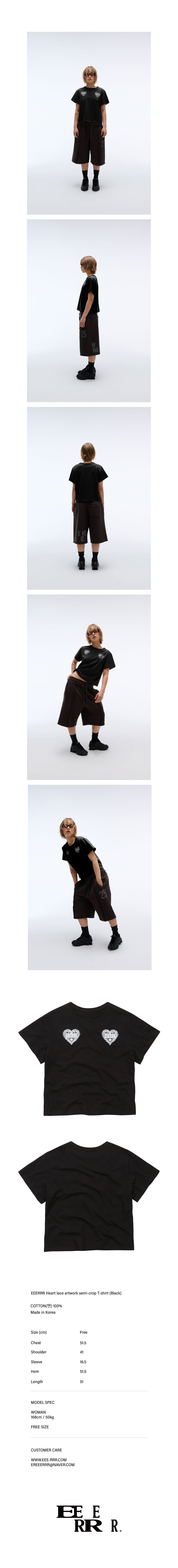 EEERRR Heart lace artwork semi-crop T-shirt (Black)